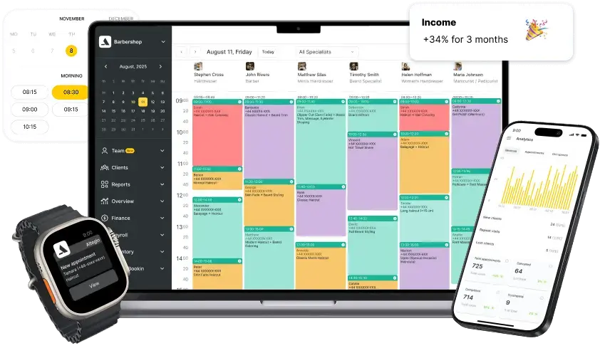 Altegio elevates your business efficiency with advanced online booking, communications, scheduling, team management, finance, inventory and 30+ more modules. All in a stable and reliable platform