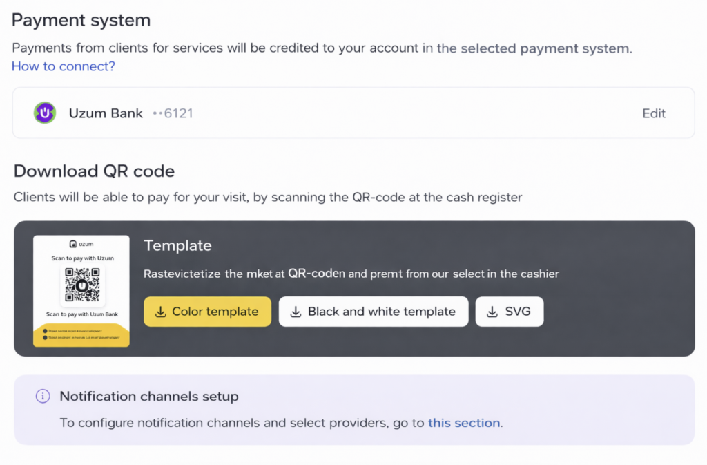 After the integration is connected, all payments made by clients through Uzum Bank will be recorded automatically in the Altegio system.