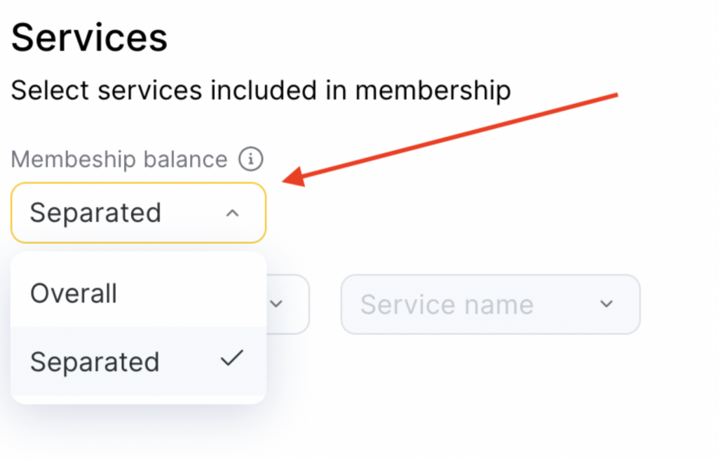 When creating a membership type for a separate type of service, select “Separate” balance; to create a membership type with the total number of visits for various services, select “Overall”.