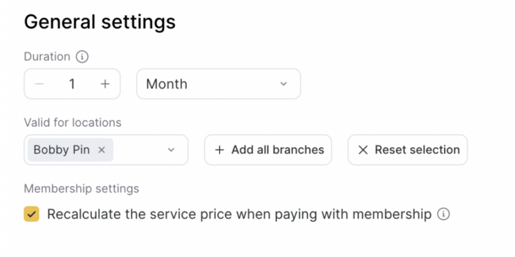 Recalculate the service price when paying with membership: Enable this option if the service price should be recalculated when using the membership.