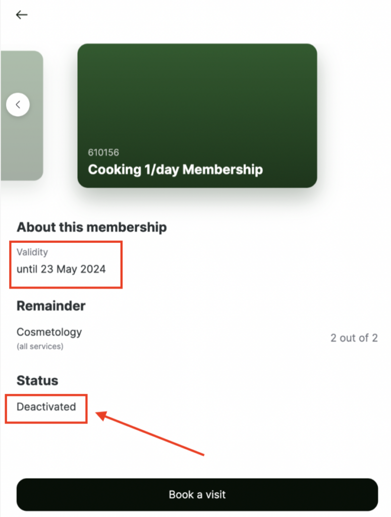 After the membership is cancelled, the status switches to Deactivated, but the membership remains usable until its expiration date.