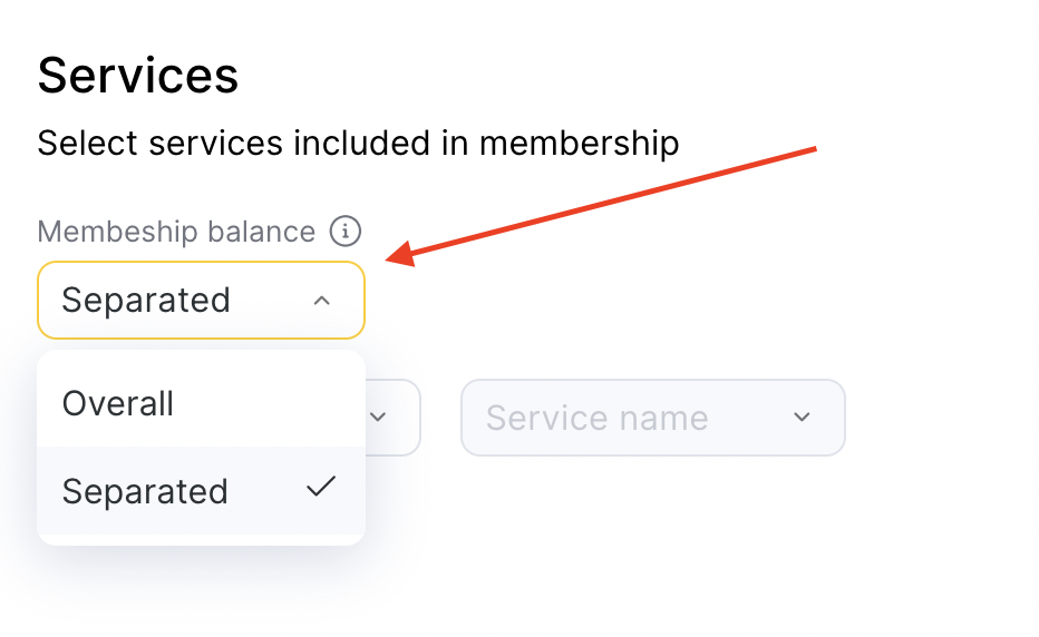 When creating a membership type for a separate type of service, select “Separate” balance; to create a membership type with the total number of visits for various services, select “Overall”.