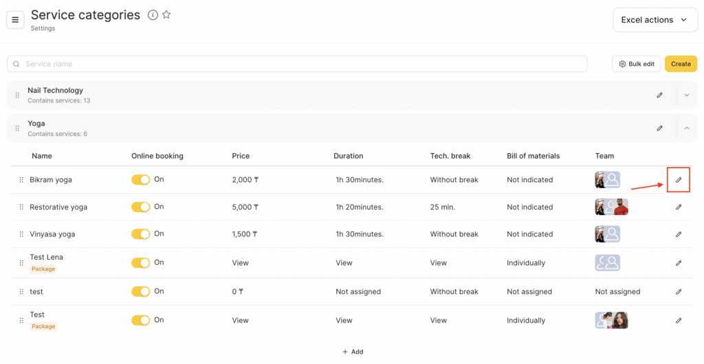 - Expand the required category and click the service name or the edit button with the pencil icon next to the service.