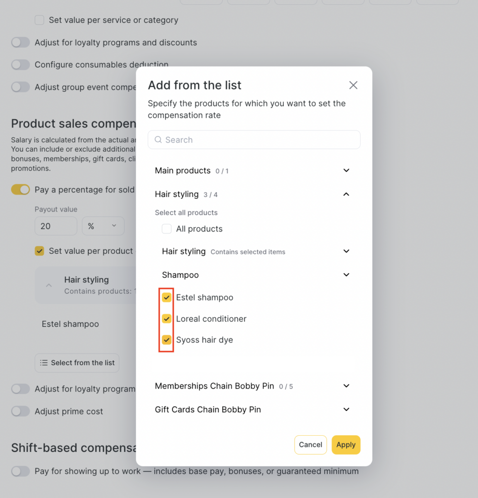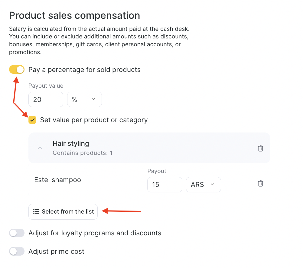 - If you enable the adjustment, the payroll calculation will use the full product price, without reducing it for the client’s discount, bonus payments, gift cards, promotions, or memberships.