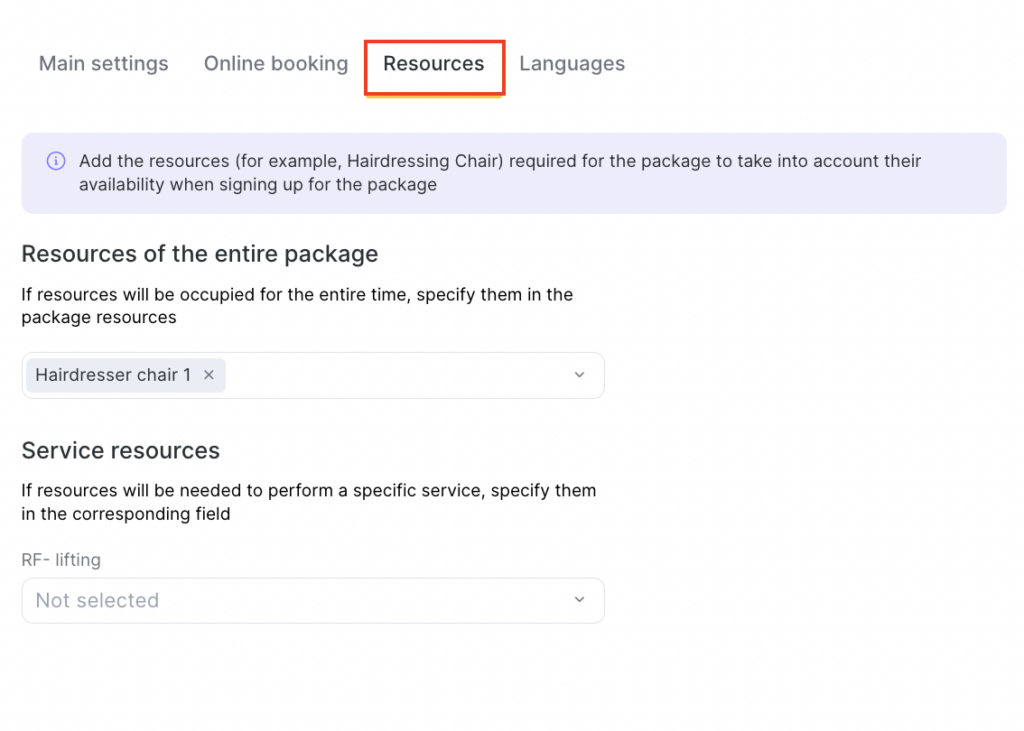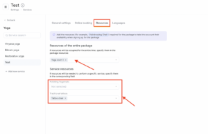 - In the Resources for the entire package block, you can add resources not for individual services but for the whole package. For information on how to create a new resource, see the relevant article.