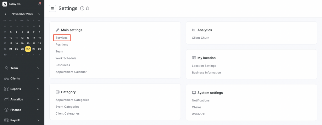 1. Services must be created in advance to appear for selection. For now, you can select only individual services.2. You can select different services from different categories.