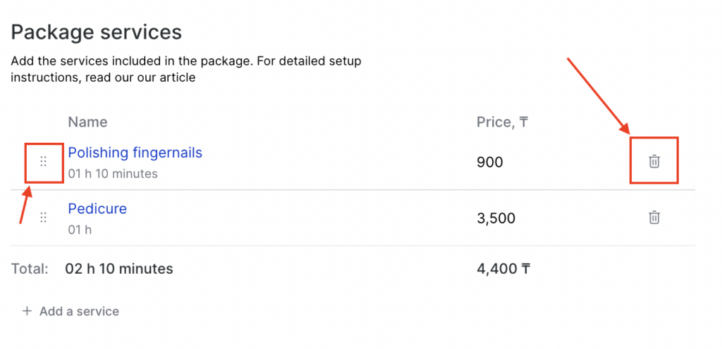 - Specify the package name. For example: Hardware manicure + hardware pedicure.