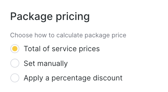 - If the package contains at least one service with a price, any pricing option can be used. The package price will then be calculated based on that one service.