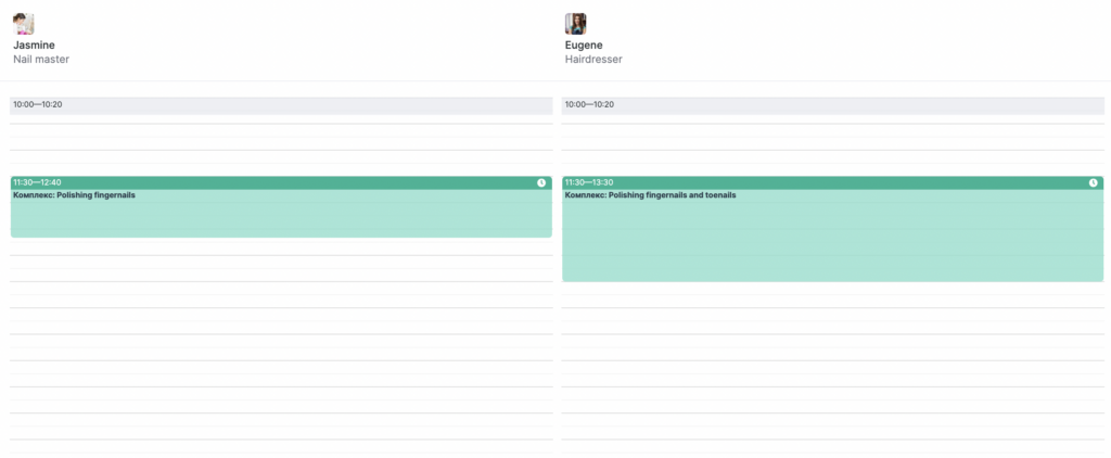 Choose this option if the services are provided one after another by different team members. Example: Evening look (Makeup + Evening hairstyle), where the makeup artist and stylist are two different professionals and provide services one after another.