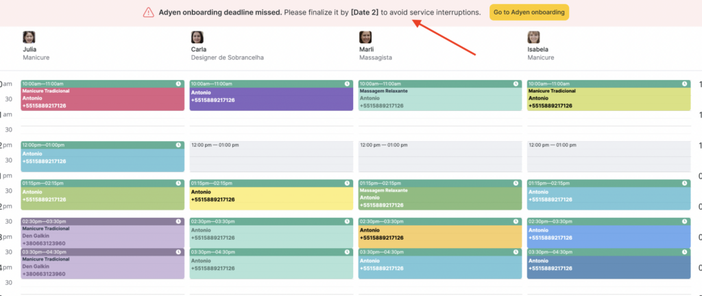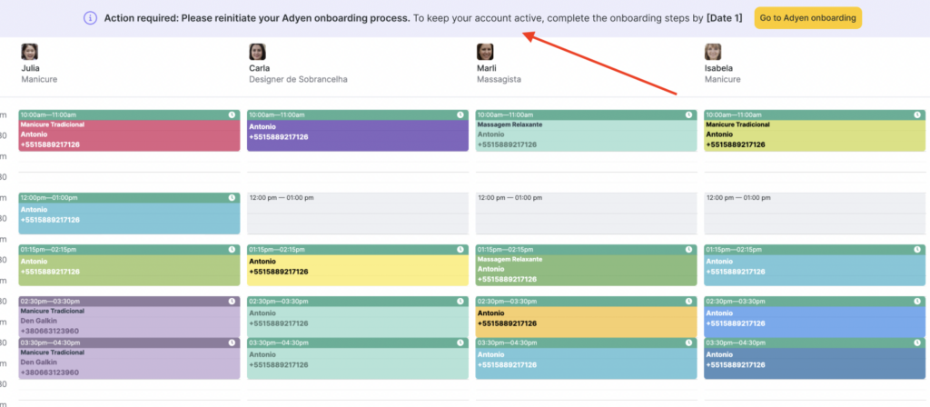In Altegio, you may see a note that you have 1 hour to complete the onboarding.