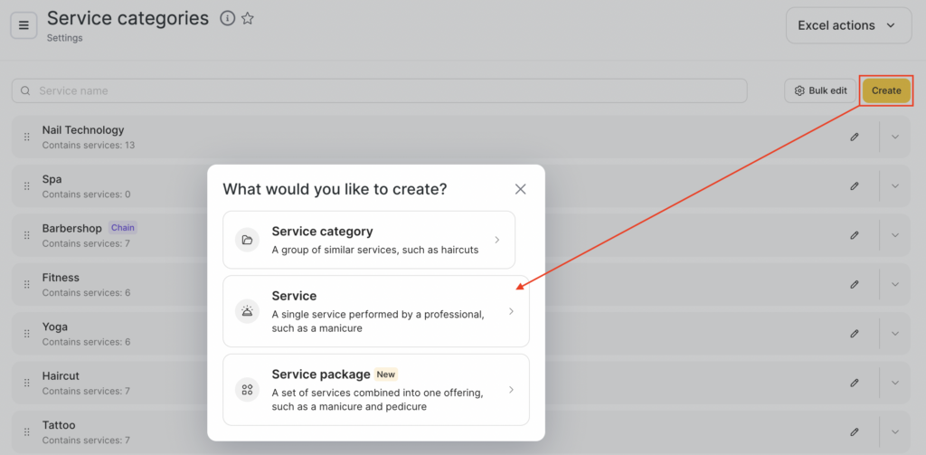 - Select the “Category” of the service, for example, Haircuts. By default, the category in which you are creating the service will be selected.