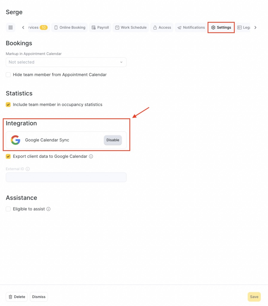 To connect a team member’s Google Calendar to Altegio, follow these steps: