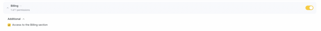 - Find the required permission section and enable it using the toggle, then click the name of the relevant block and enable the specific permissions you want to grant the team member.