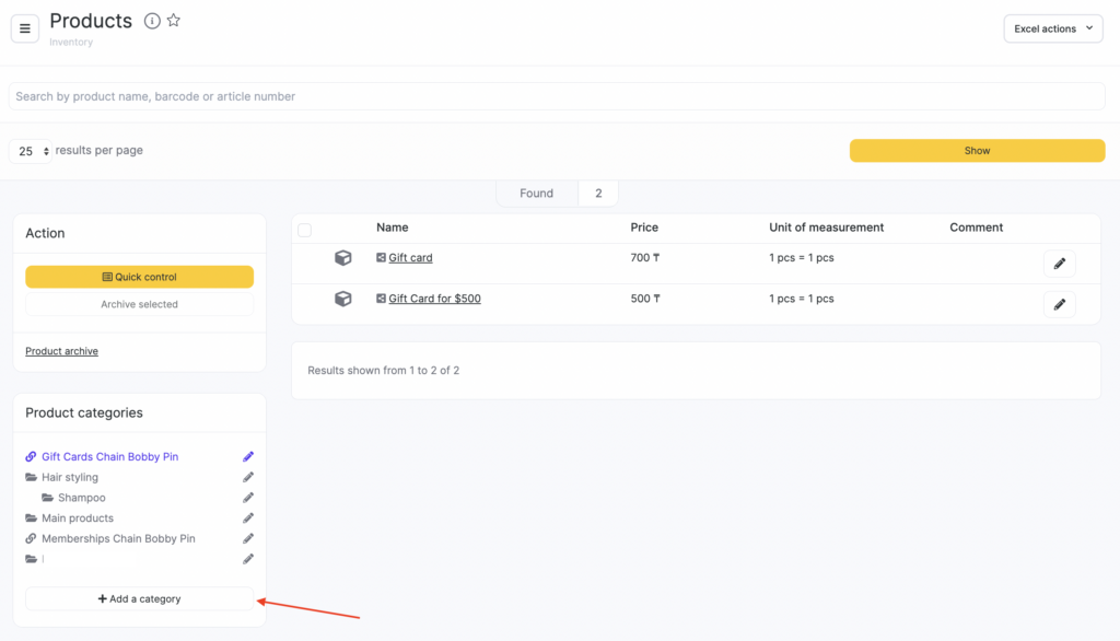 By default, Altegio has a category called Main products. After you create your own category, you will be able to delete it. Categories can be added, configured, and deleted.