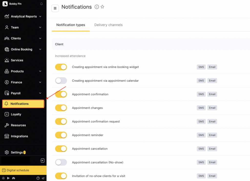 In the Notifications tab you can enhance your appointment management. The features in this tab allow you: