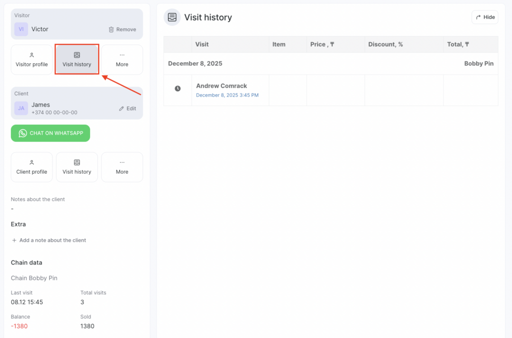 The visitor will appear in the client’s card. Later, you will be able to register them again.