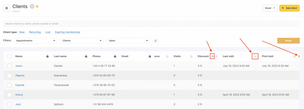 For example, this is useful if you need to see which clients haven’t visited for a long time, or if you want to find out who your most profitable guest is.