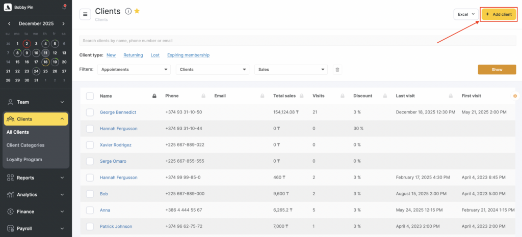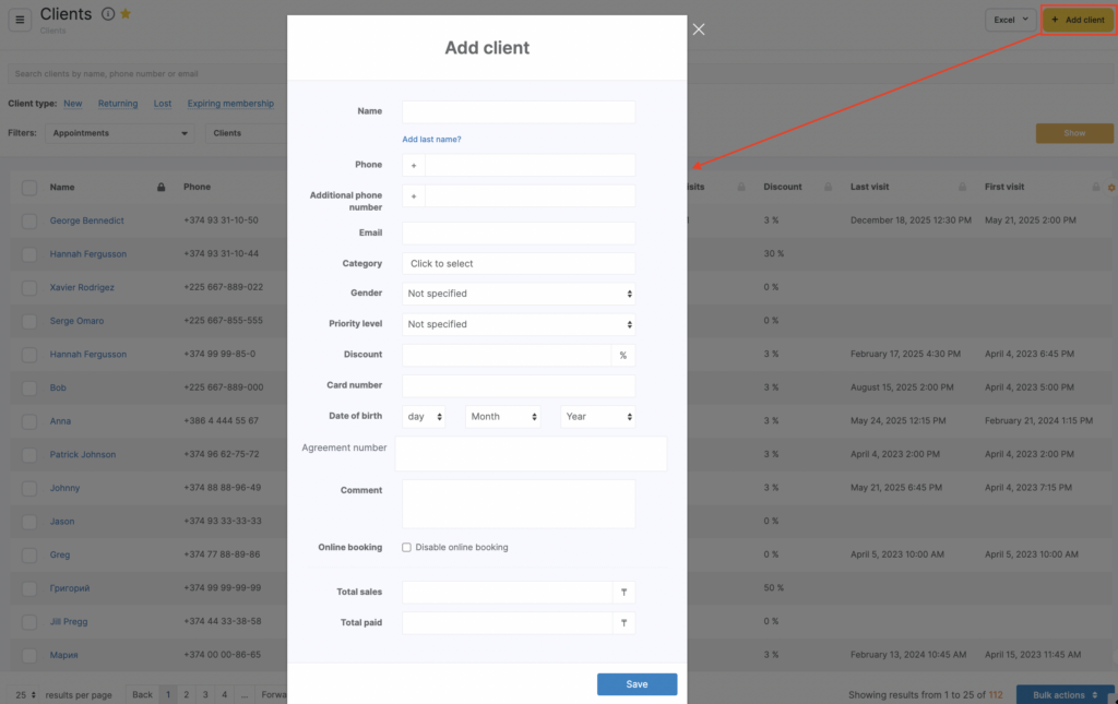 Don’t forget to click “Save” to add a client to your database.