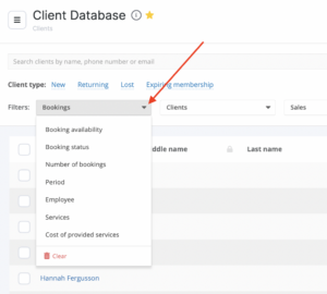 - Services: This filter will help you find clients who have made bookings for specific services.