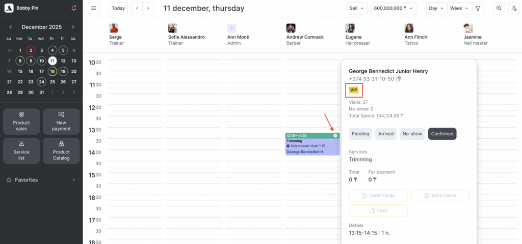 Besides that, you can view client’s category by hovering over the status in the Appointment Calendar after appointment creation.