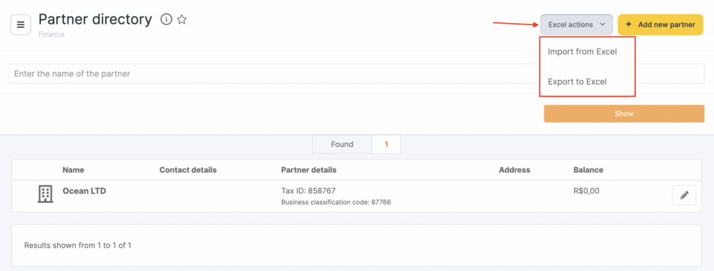- Click Excel operations, and in the drop-down list select Export from Excel.