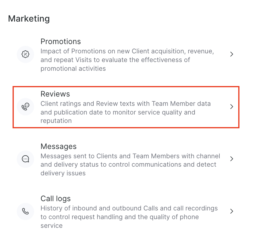 - The client has already left a review — select a branch, staff member, or service. This option is needed to avoid requesting a review from the client again.