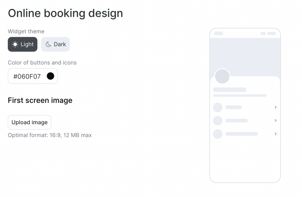In Altegio, you can set any interface color, customize the widget design to match your brand, and add a logo and images.