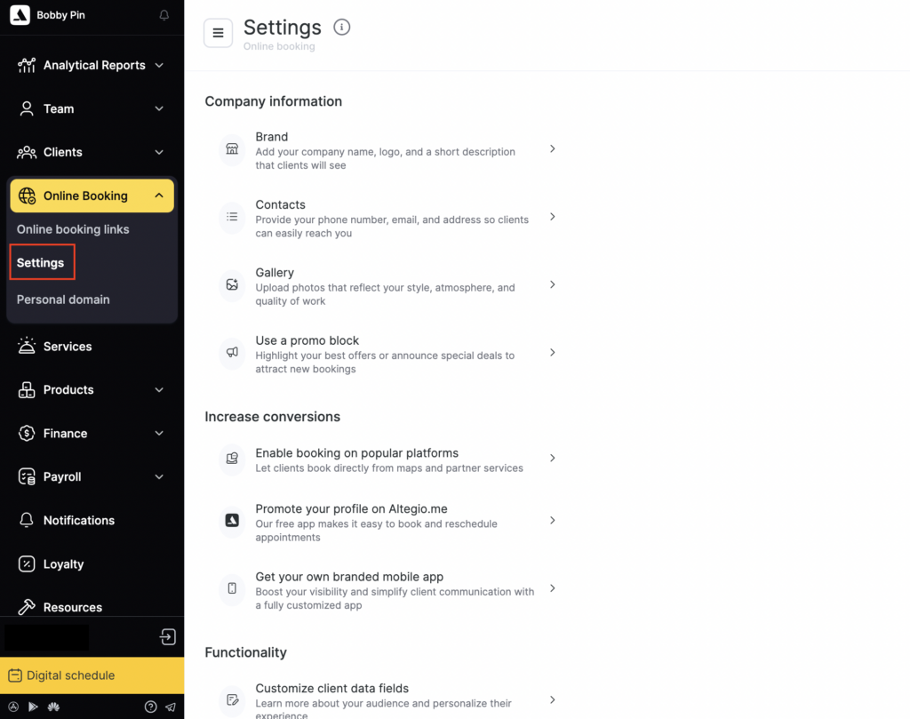By completing this section, you make your brand recognizable, your contact details easy to find, and your booking page more attractive — which can improve conversion and bring more new appointments.