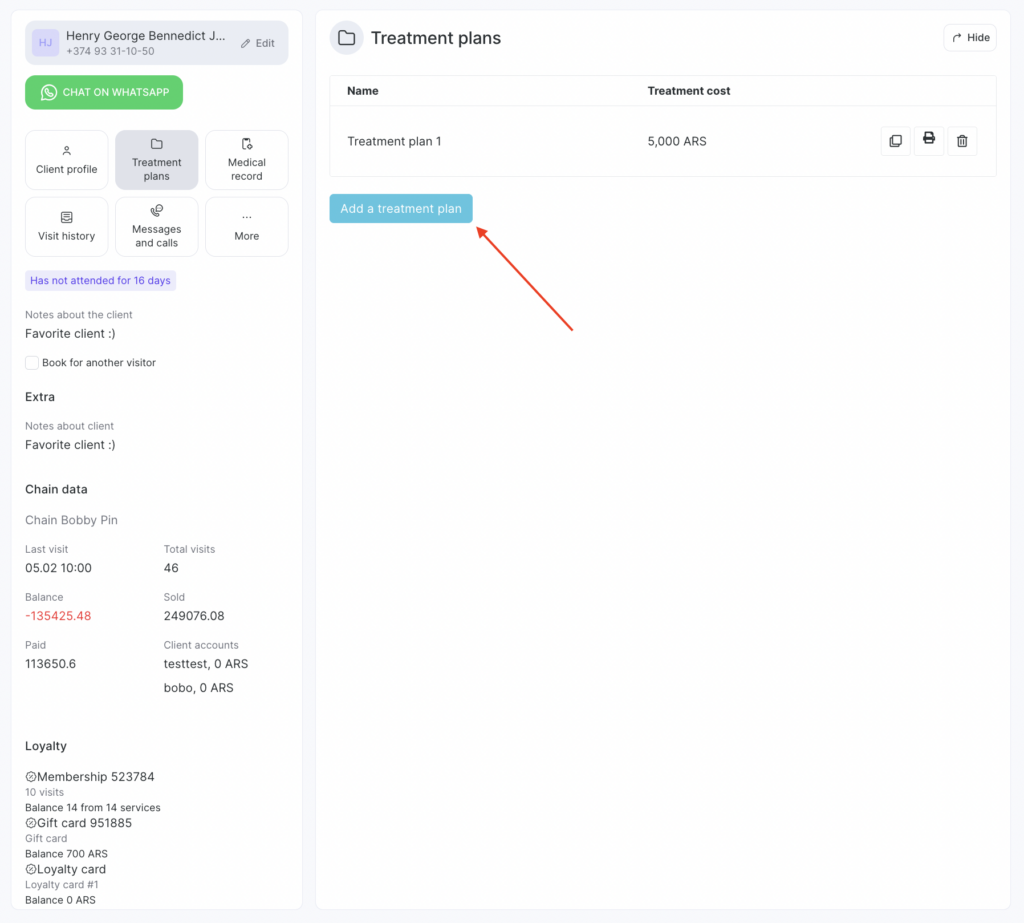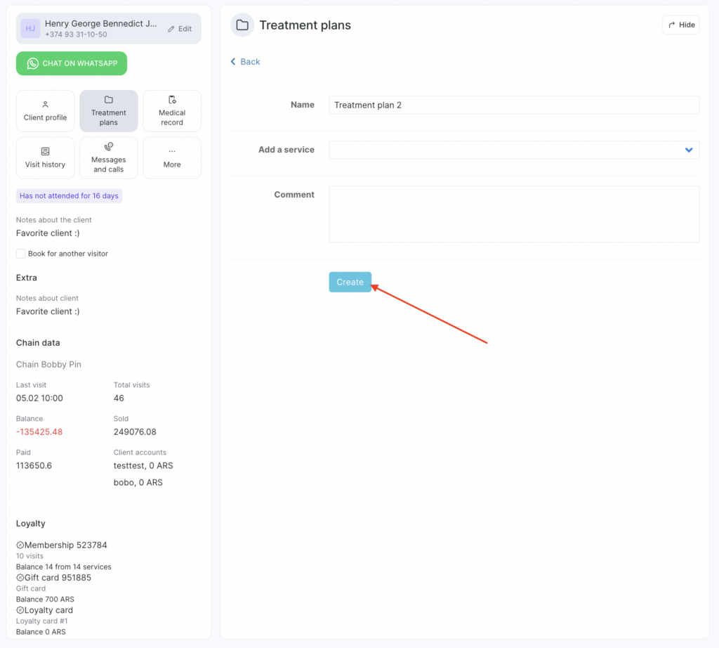 - Click Add treatment plan.