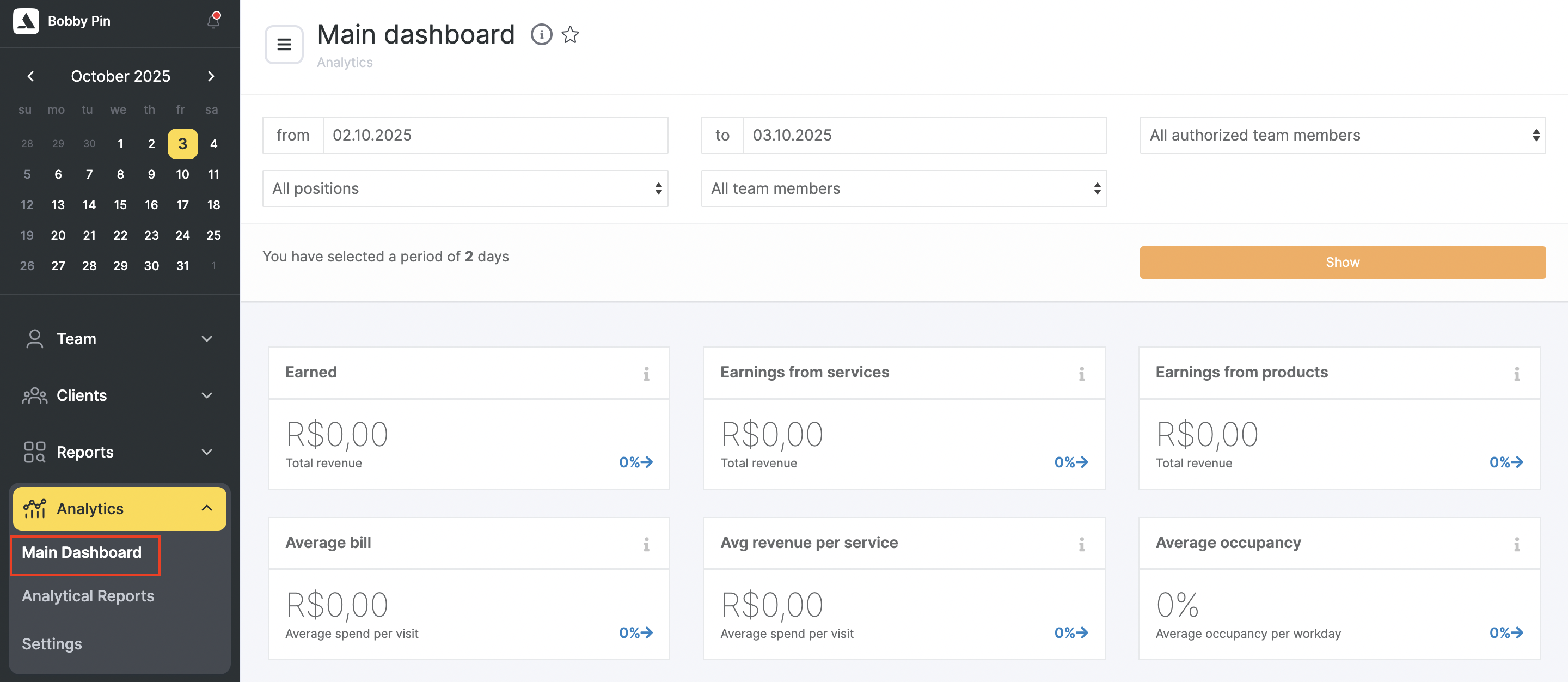 The average occupancy might not be formed in a proper way, if there is a configured schedule for the employees who do not provide services (for example, administrators). They don’t have any bookings, but they will get into the statistics.