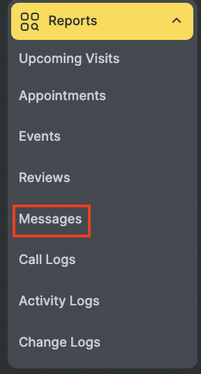 The Reports > Messages section contains information about all messages that were sent to clients, receptionists, and team members.