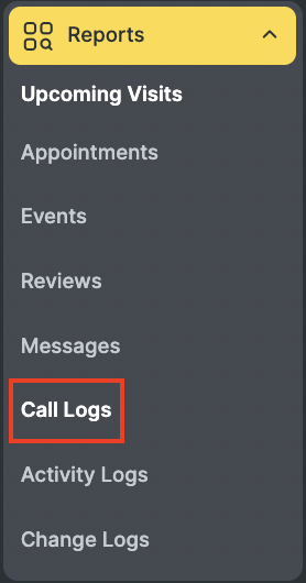 The call report includes the following data: