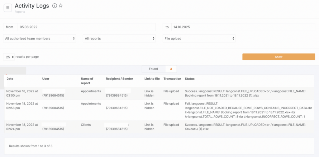 The Reports – Calls section contains information about all calls that were made during a certain period. To listen to the call, follow the link Link to the recording. Conversation recordings are stored for 1 year.