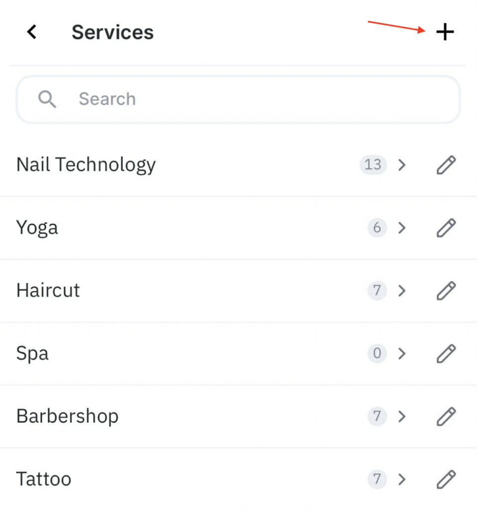 - To add a new category of services, click the + button in the upper right corner.