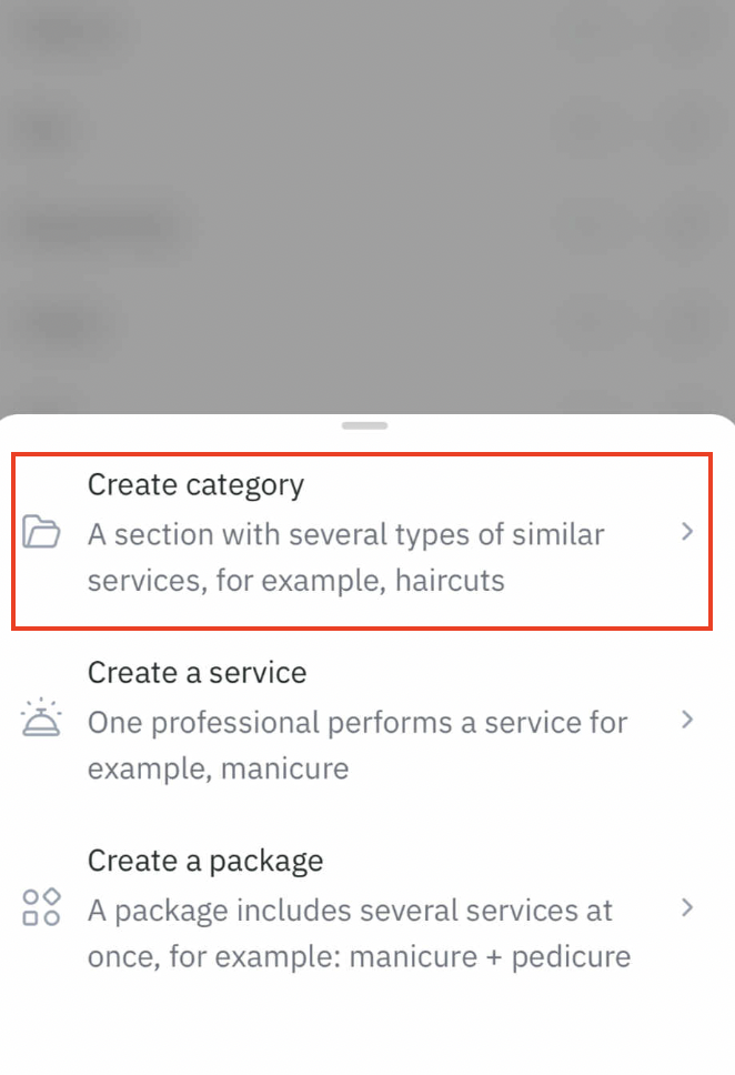 Example of categories: haircuts, coloring, consultations, quests, body repair.