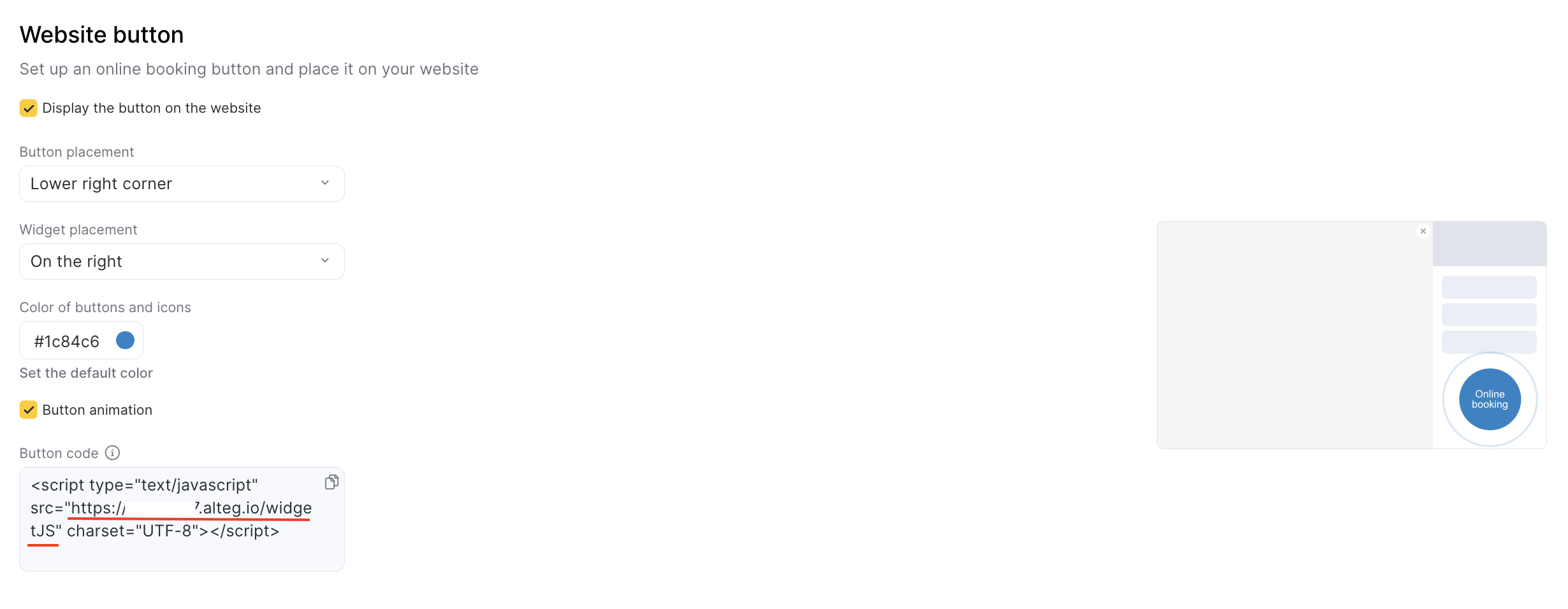 Use this instruction if you want to create separate booking links for each employee or service. For example, if each employee or service has a separate page with a description and you want to place the Online booking button on it.