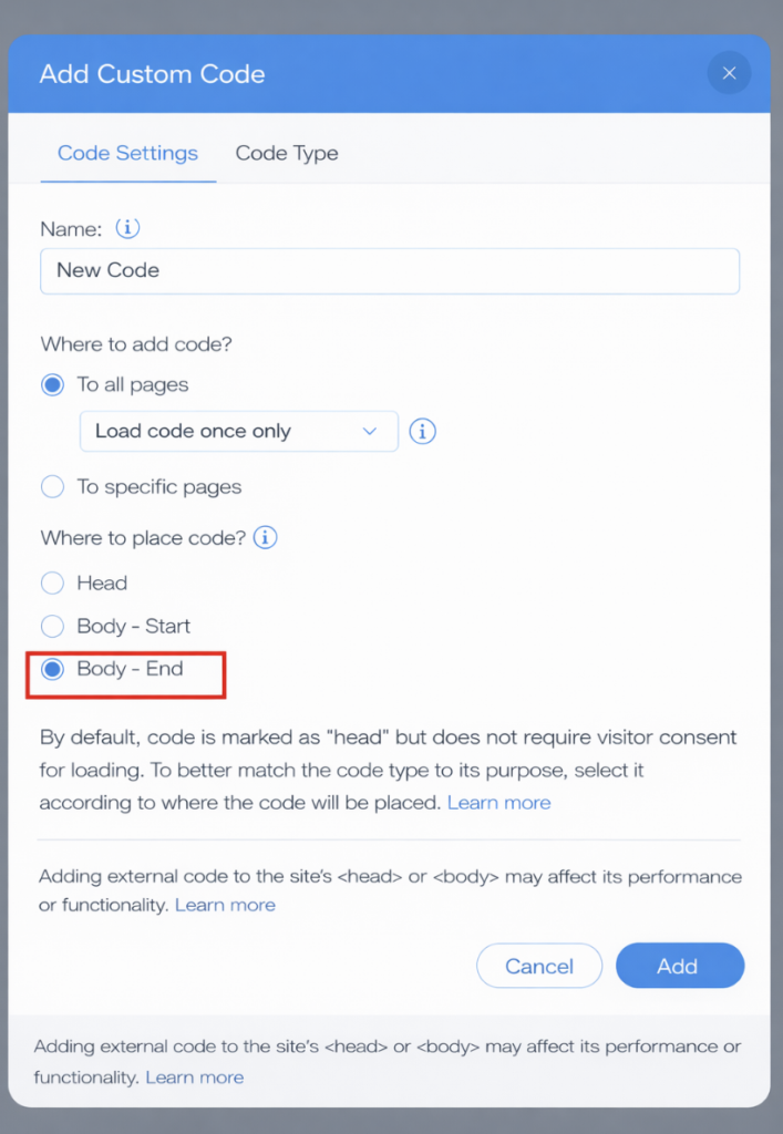To add an Altegio button or online booking to a custom button on WIX, your site must have a custom domain connected.