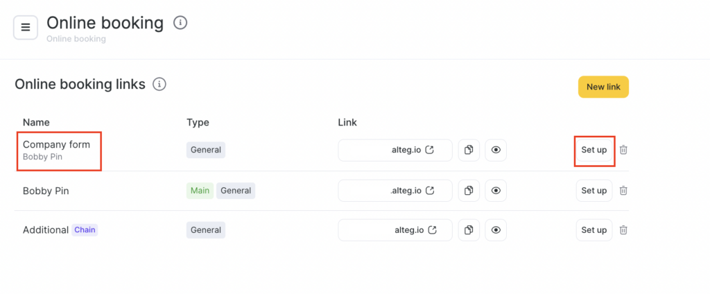 - In the main Altegio menu, go to Online booking → Online booking links.