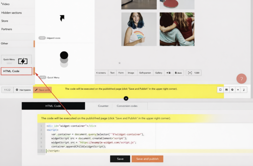 In the Button code field, copy the link (as shown in the example below) and paste it instead of the words “link from the Button code menu” in the HTML code you added earlier.