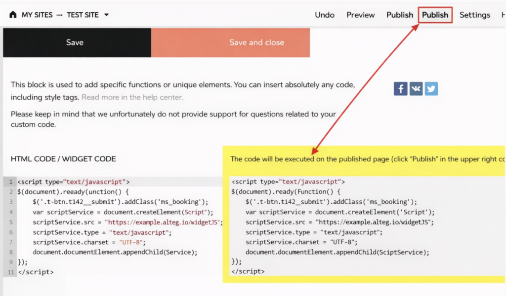 - Where CLASS is the value of the class field from the button code, and link from the Button code menu is the value from the Altegio online booking form (how to find this data is explained below).