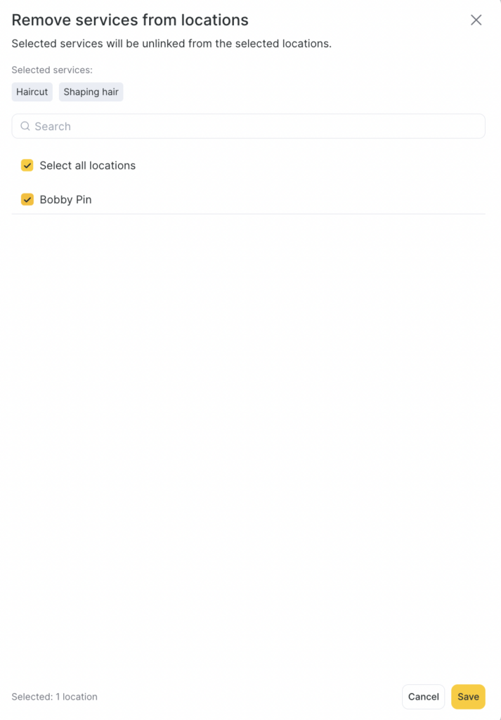 - The selected categories or services will be added to the checked locations and removed from the others.