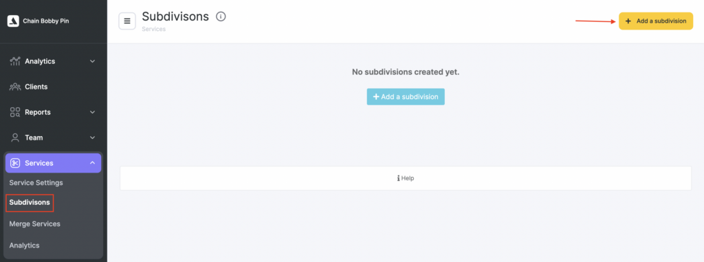 You can group services by subdivisions for a more convenient display of analytics by services. For example, all service categories for women may be attached to the “Women” subdivision.