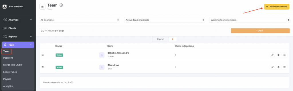 In the chain interface, you can assign a team member to multiple locations. This setting removes the need to create a separate team member profile in each location and also helps you merge multiple profiles of the same team member who works in different locations into one.