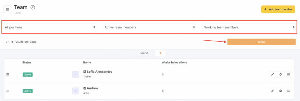 For convenience, you can view team members selectively by filtering the list by: