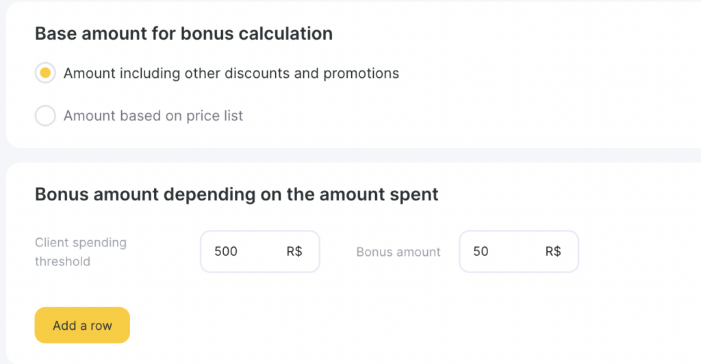 Source of parameters for rules. You can indicate where from to take the data (amount paid by client, amount sold to client, amount of visits), according to which bonuses will be accrued: