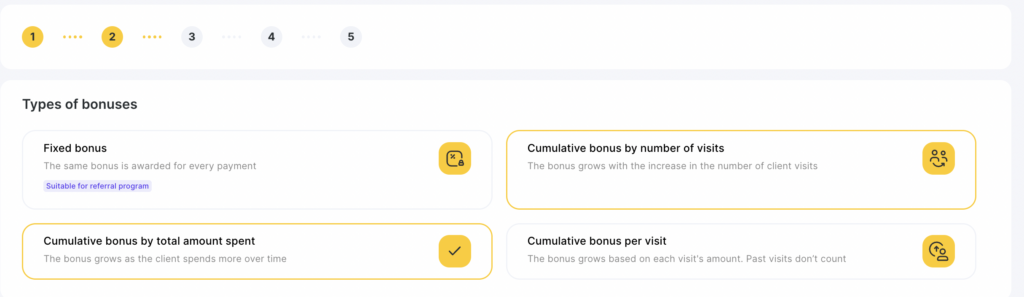 - Cumulative cashback (paid) for visits. Will grow depending on the number of visits and the bonus will be accrued from the amount paid. Amount of visits and bonuses are determined using rules.