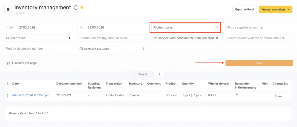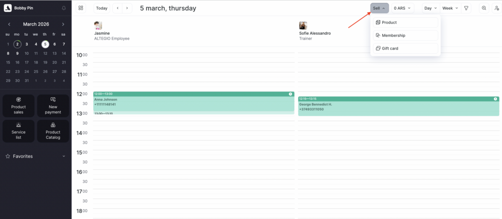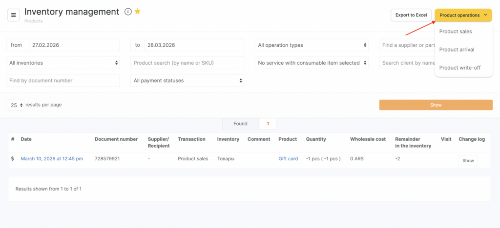 You can also create a sales transaction directly in Products > Inventory Management without using the appointment calendar. To do this, click Product Management > Product operations > Product sale in the upper-right corner.