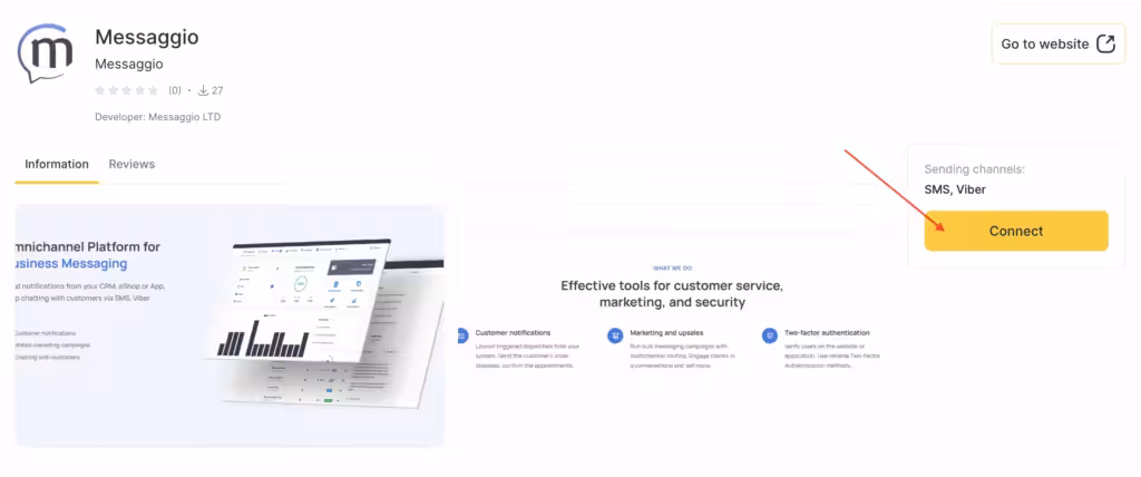 The MESSAGGIO.COM omnichannel messaging platform provides a service for sending SMS, Viber, and WhatsApp messages.