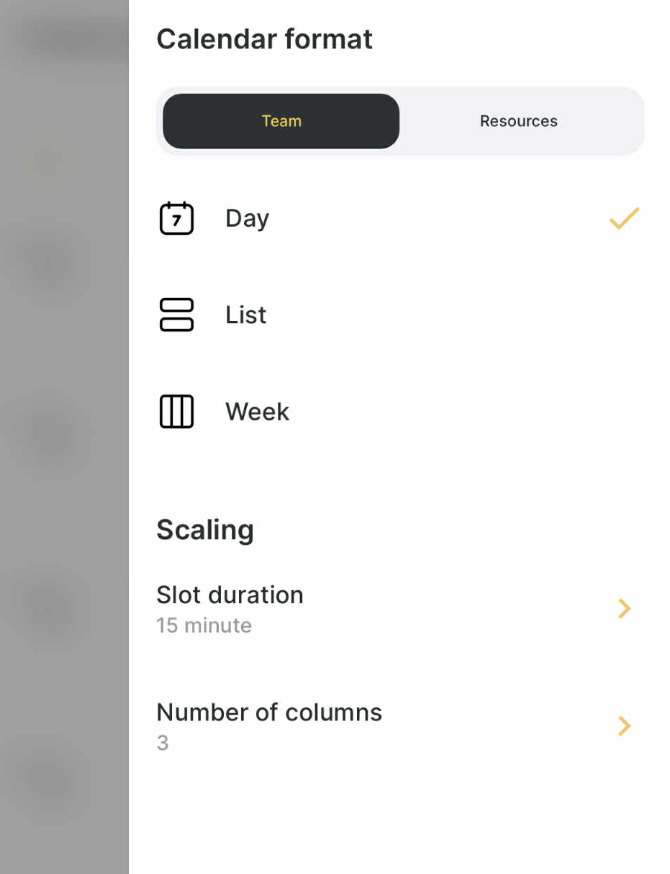 If you select fewer columns in the settings than are currently displayed in the calendar, a horizontal scroll option will be available for navigation.