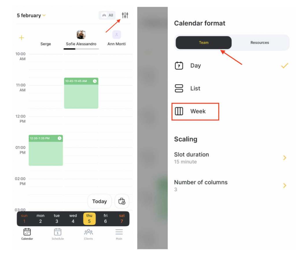 In the Altegio mobile application, you can view the Appointment Calendar in the Week mode. Employees and administrators will be able to check occupation for an extended period.